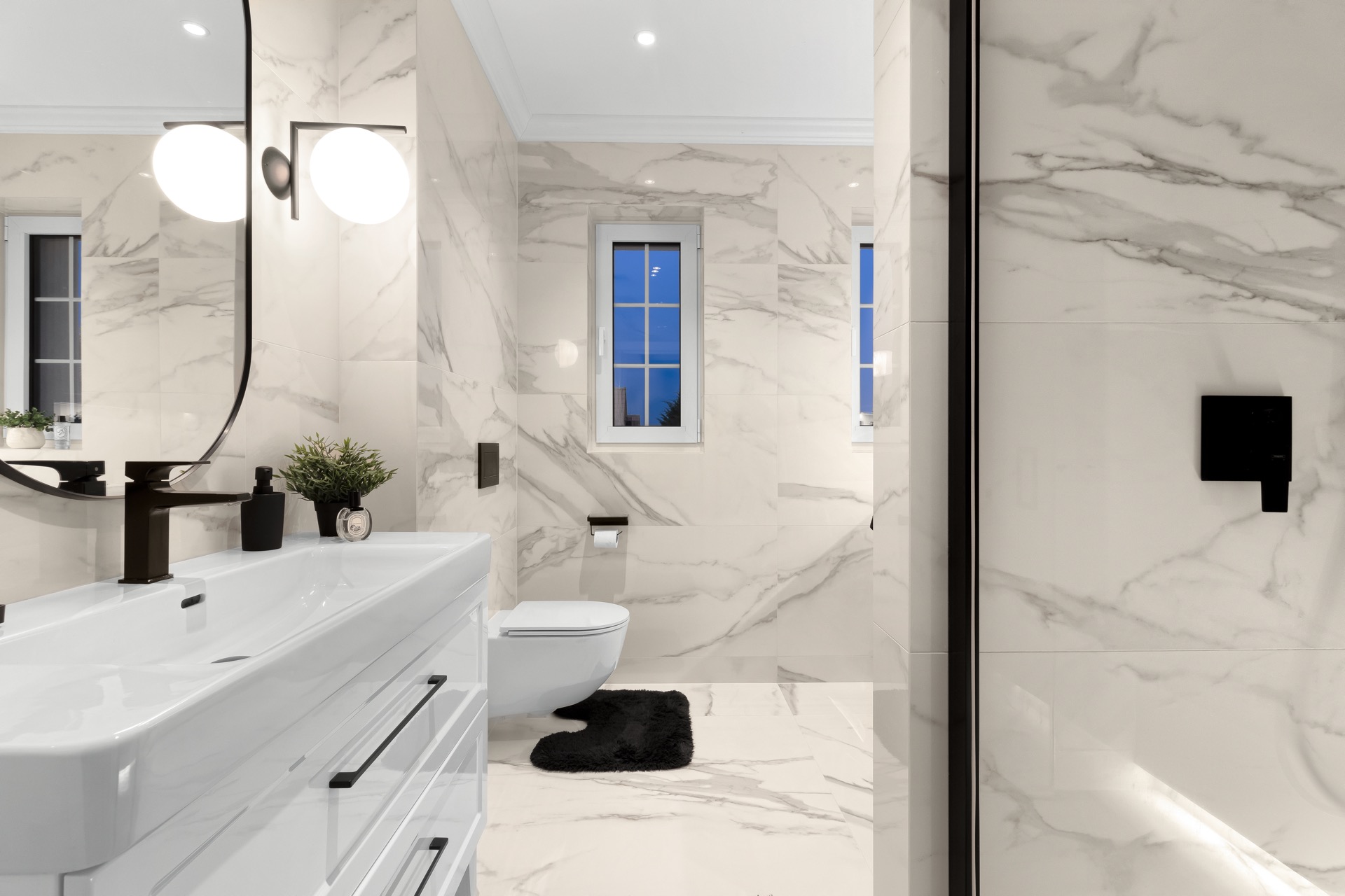 Prohlédněte si standardní vybavení koupelny – obklady, dlažby, sanitu i baterie.