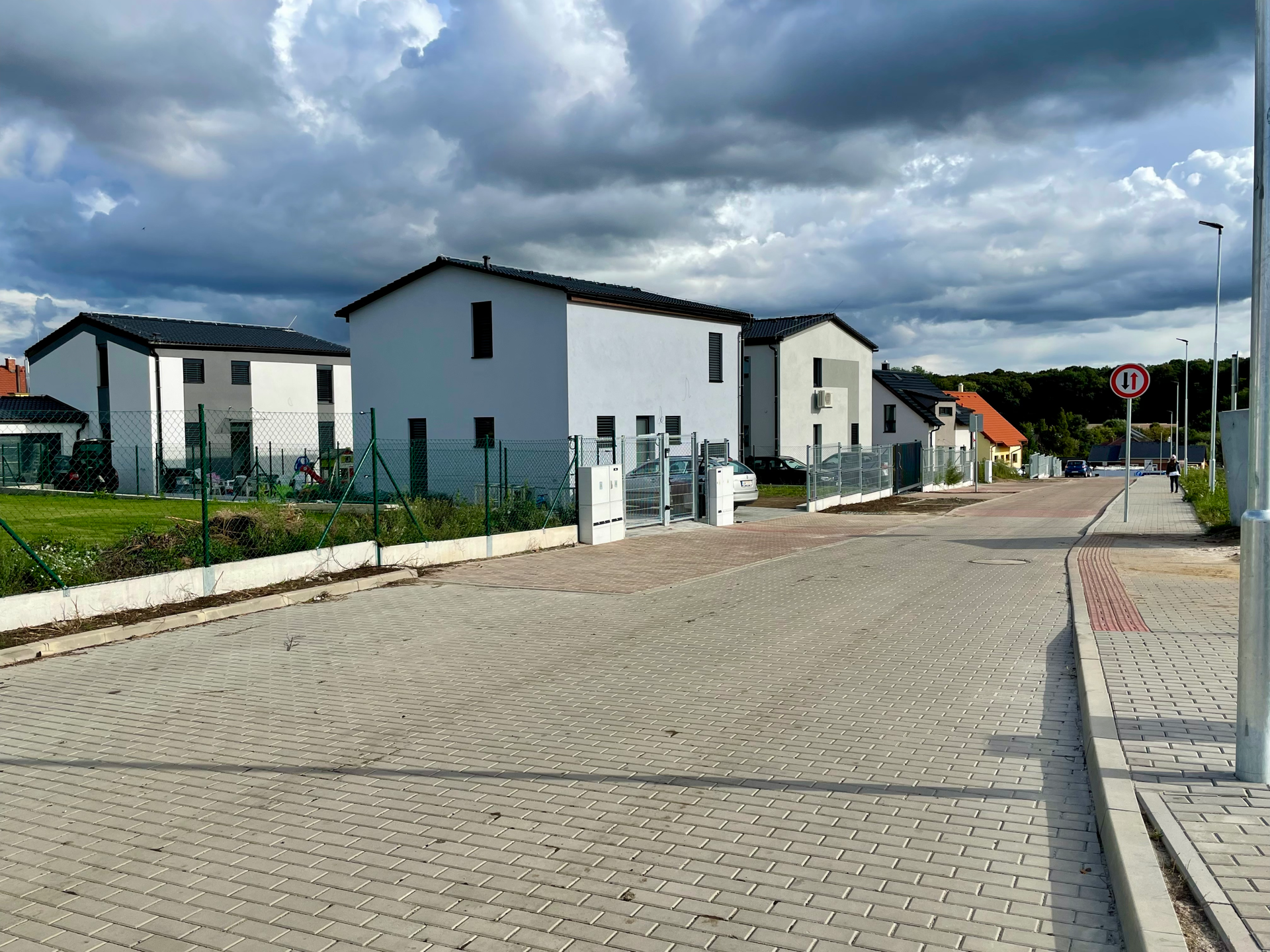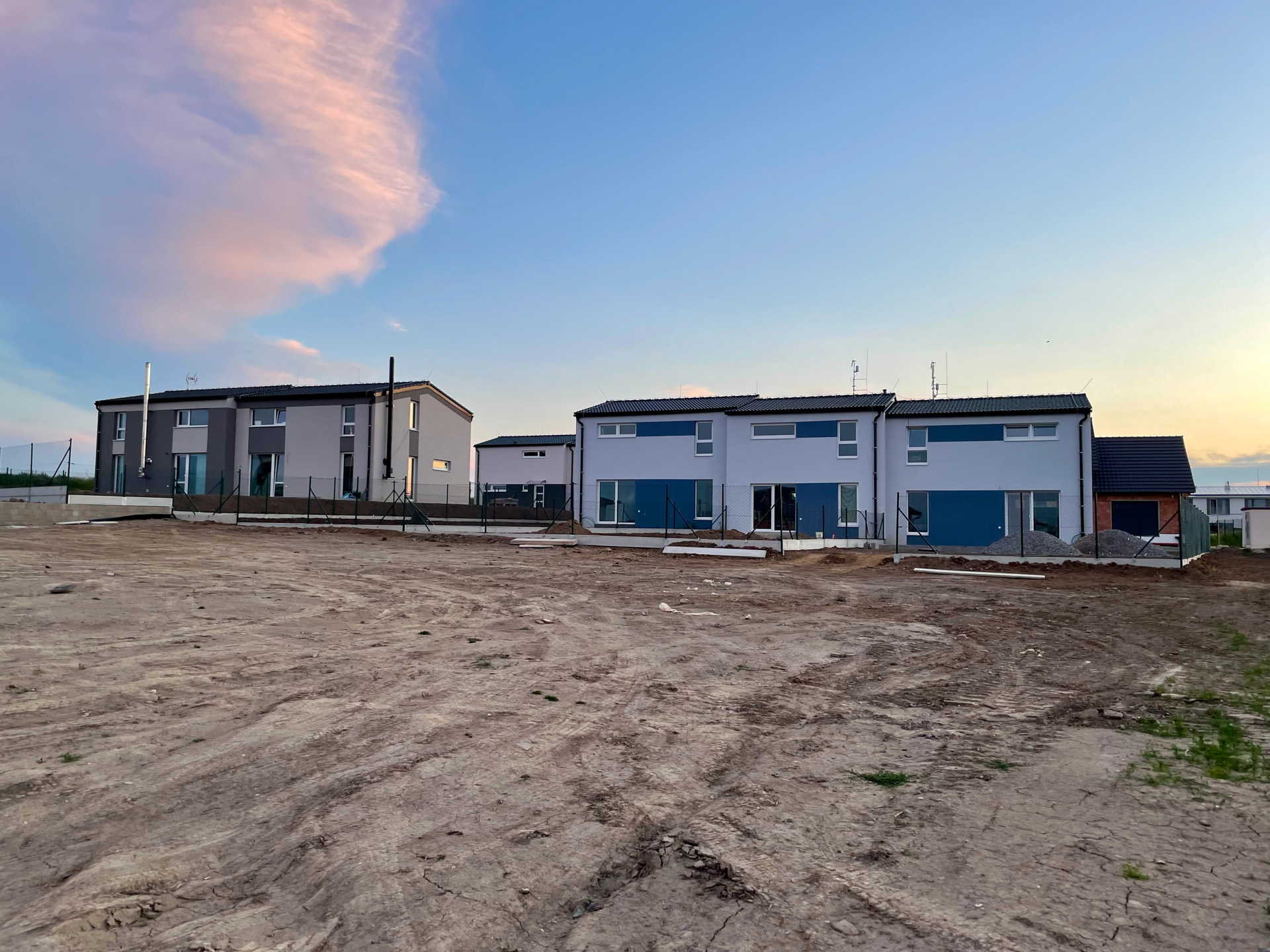 V obci Drahelčice jsme úspěšně dokončili výstavbu pěti řadových rodinných domů, které jsou napojeny na všechny inženýrské sítě – vodovod, splaškovou i dešťovou kanalizaci, elektřinu a plyn. Součástí projektu bylo také vybudování retenčních nádrží pro hospodaření s dešťovou vodou. Každý dům má zajištěné vlastní 2 parkovací stání před domem a oplocenou zahrádku v zadní části pozemku. V rámci rozšíření infrastruktury jsme navíc realizovali novou komunikaci, chodníky a veřejné osvětlení v sousední ulici V Ruči, čímž jsme přispěli ke zlepšení dopravní obslužnosti, bezpečnosti a komfortu celé lokality.